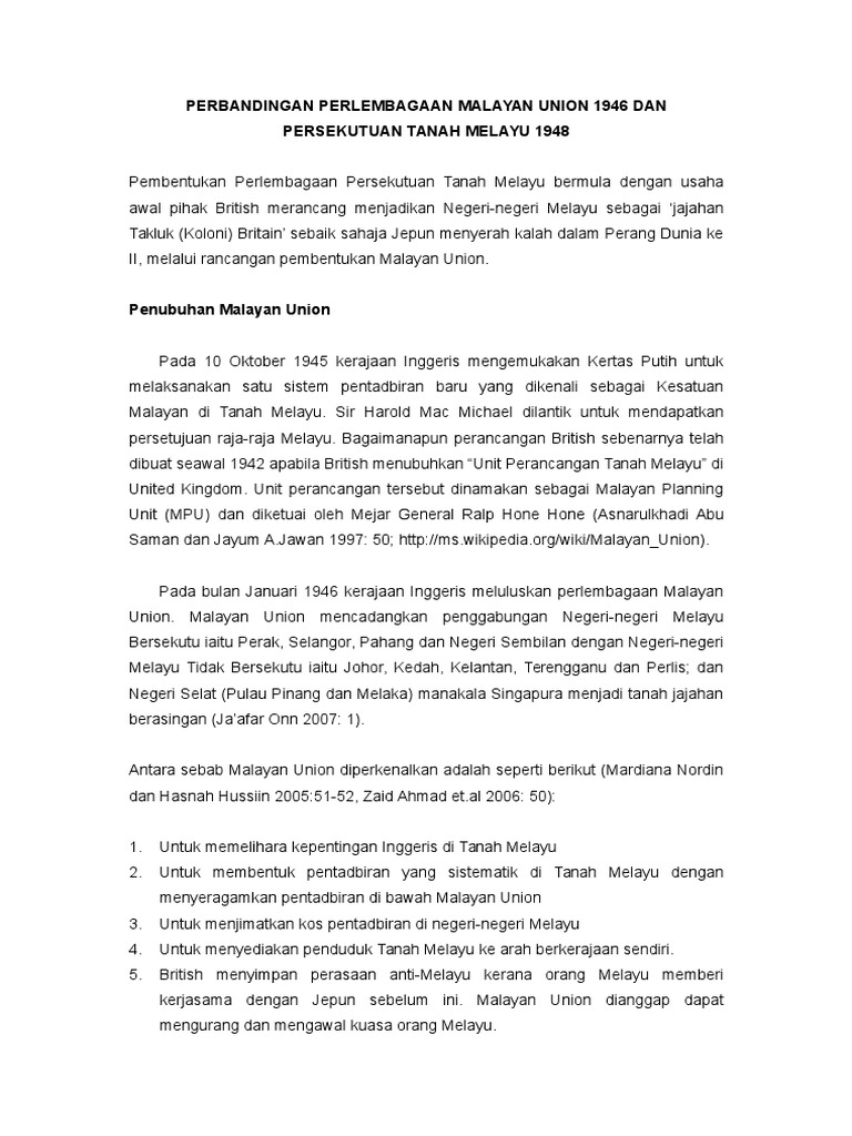 Perbandingan Perlembagaan Malayan Union 1946 Dan P Pdf