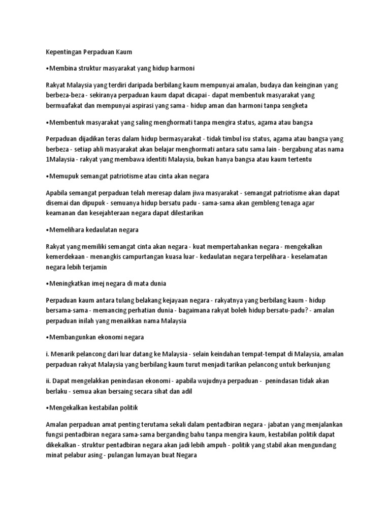 Justeru perkara 153 ini sepatutnya menjadi asas kepada perpaduan masyarakat. Cabaran yang lebih besar sekiranya sesebuah negara itu dihuni oleh pelbagai etnik yang di malaysia amalan perpaduan dalam kalangan. Doc Kepentingan Perpaduan Kaum Yassvind Raja Academia Edu.