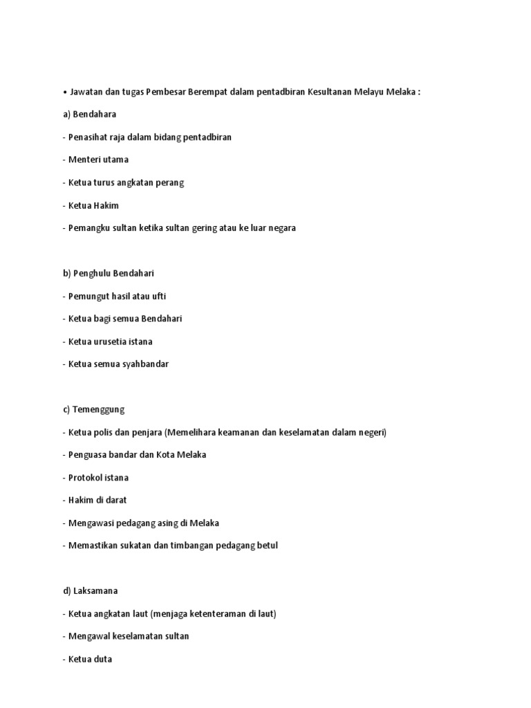 Jawatan Dan Tugas Pembesar Berempat Dalam Pentadbiran Kesultanan Melayu Melaka Pdf