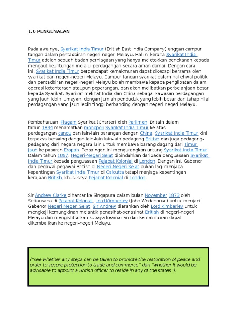 Doc Sejauh Manakah Perjanjian British Di Tanah Melayu Menyebabkan Mereka Menjadi Kuasa Tunggal 1824 1874 Nurul Shafiqah Shafif Academia Edu