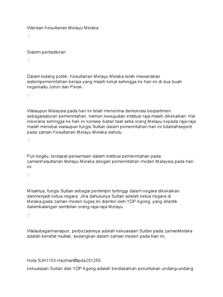 Sistem Pentadbiran Kesultanan Melayu Melaka Pdf