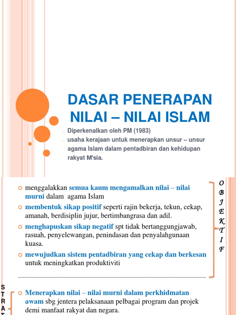 Semua penjawat awam diarah untuk bekerja dengan amanah dan tidak mengamalkan rasuah. Islam dalam Perlembagaan Malaysia. DASAR PENERAPAN NILAI-NILAI ISLAM DALAM PENTADBIRAN Latarbelakang Di dalam Perlembagaan Malaysia Islam ialah agama rasmi Negara dan hak mengendalikan hal ehwal Islam diberikan kepada Raja-raja dan Kerajaan-kerajaan Negeri.