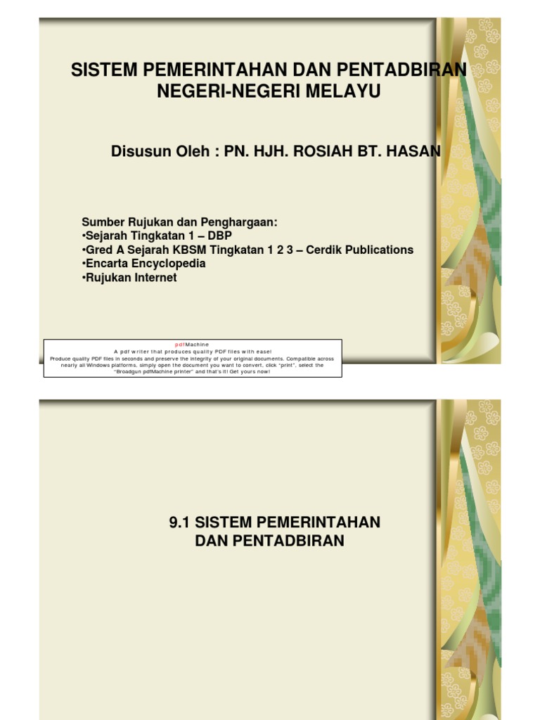 9 1 Sistem Pemerintahan Dan Pentadbiran Negeri Negeri Melayu Pdf